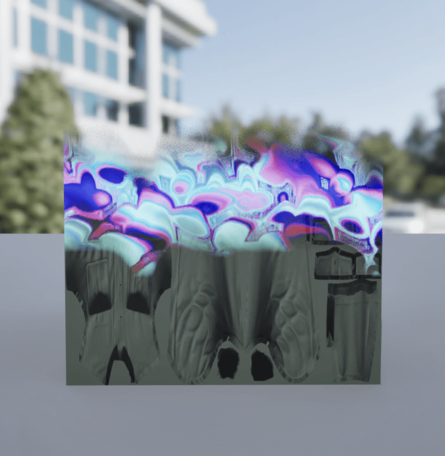 The visual goal was to create a controllable dissolve with a glowing emissive edge. Rather than default to fire or simple noise, I explored a melting iridescent paint aesthetic. The surface will liquefy and flow before vanishes entirely.